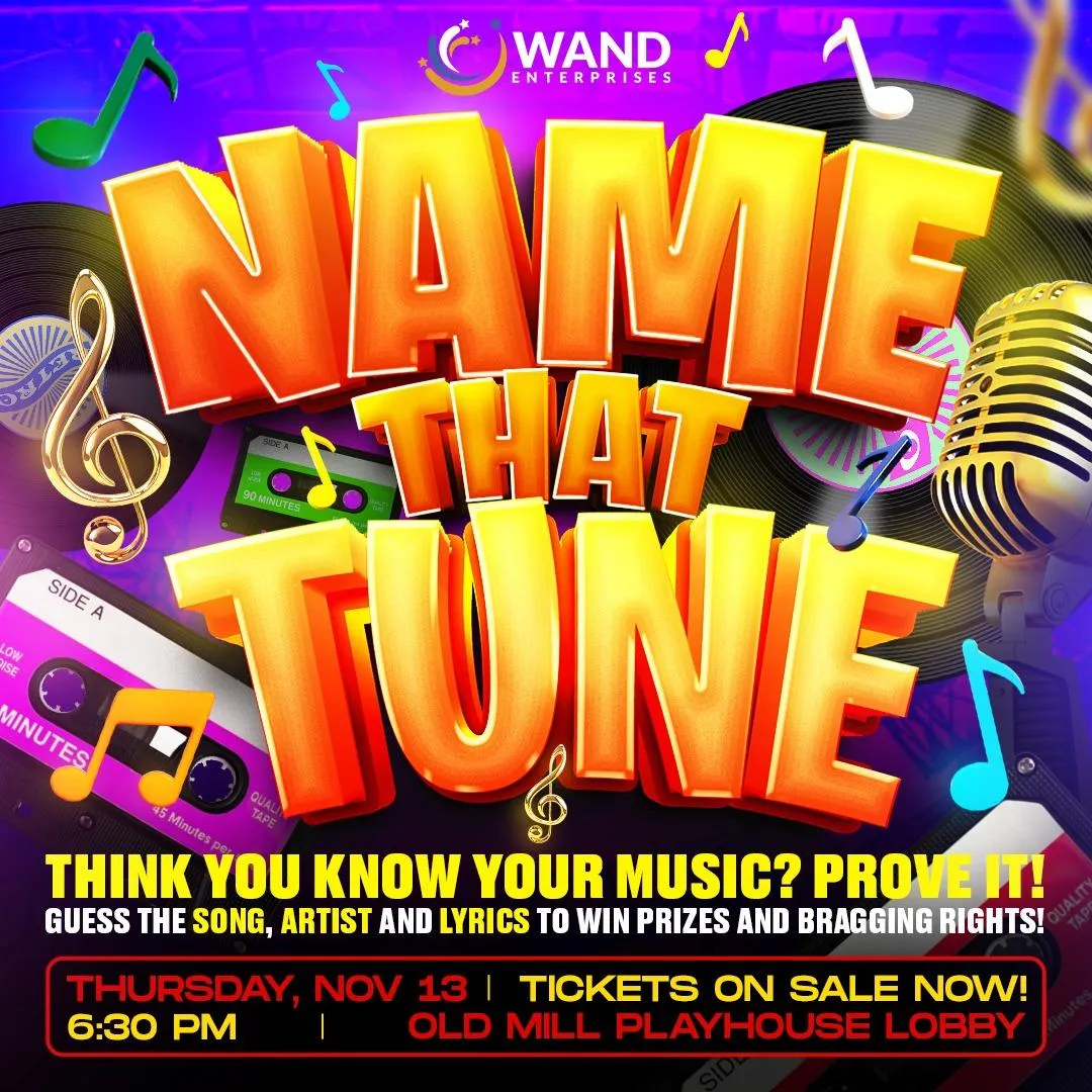 Name That Tune returns to Old Mill Playhouse—bigger, louder, and more fun than ever. Form a team (up to 10), guess the songs, rack up points, and compete for prizes, bragging rights, and ultimate Chart Champ glory.